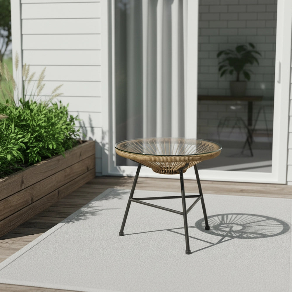 Stylish Woven Rope Outdoor Lounge Table with Glass Top